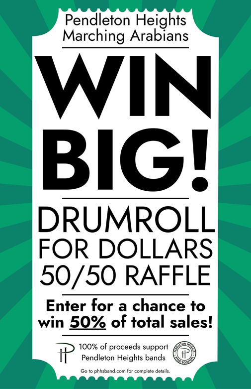 Prize: One winner will receive a cash prize equal to 50% of the total ticket sales. The remaining proceeds will support the Pendleton Heights Band Program.